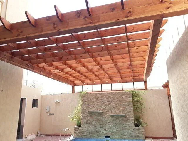 عازلة تماما للاشعة فوق البنفسجية برجولات خشبية مضادة لتسرب مياه الامطارتركيب برجولات خشبية يقضي على الرطوبة نهائيابرجولات من الخشب المقاوم للتاكل والتسوسبرجولات خشبية متوفرة بعدة ألوان مميزةدهانات عازلة من اعلى نوعية وجودة للبرجولات خشبيةالبرجولات الخشبية مضادة للحرائق ضمان يمتد ل 15 سنة بعد تركيب برجولات خشبية